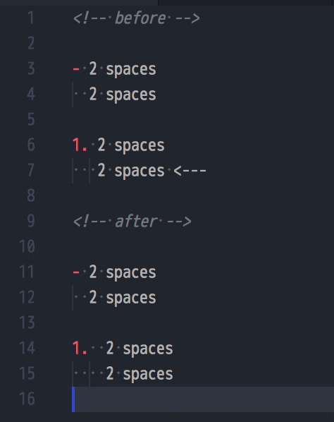 Respect tabWidth for list items (#3990 by @ikatyang)​